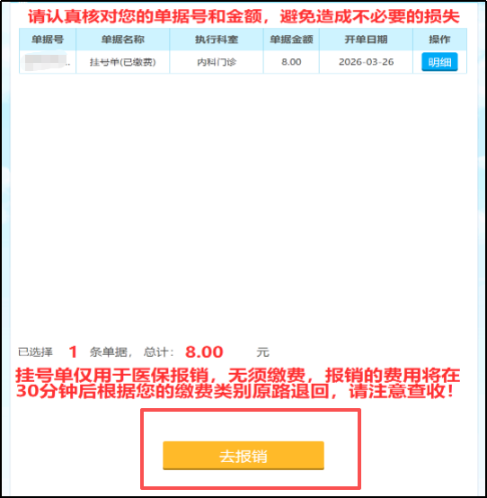 患者自费全额缴纳挂号费,待就诊结束后可通过自助机完成挂号费报销,报销操作完成后,报销金额将退至账户中。我院自助服务终端均可办理门诊挂号费报销,具体步骤如下: