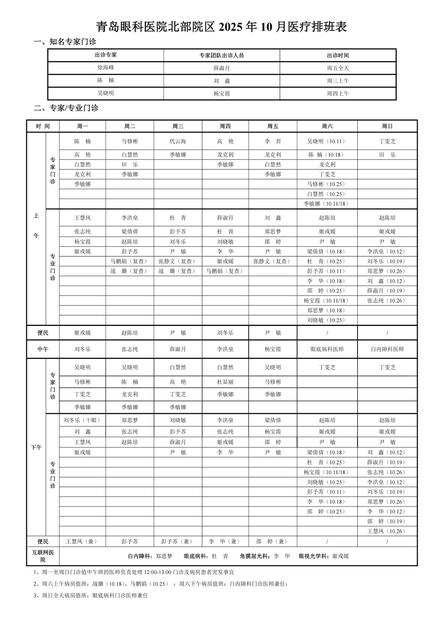 周末医生门诊信息仅供参考,具体以微信预约放号为准。
