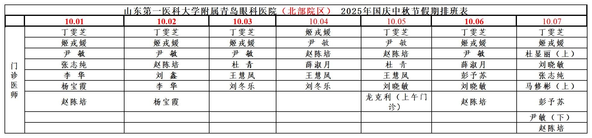 【放假通知】2025年“国庆节”放假时间为10.1--10.7,自10.8起门诊恢复。放假期间均有值班医生值班,急诊24小时接诊。门诊医师排班详见《门...